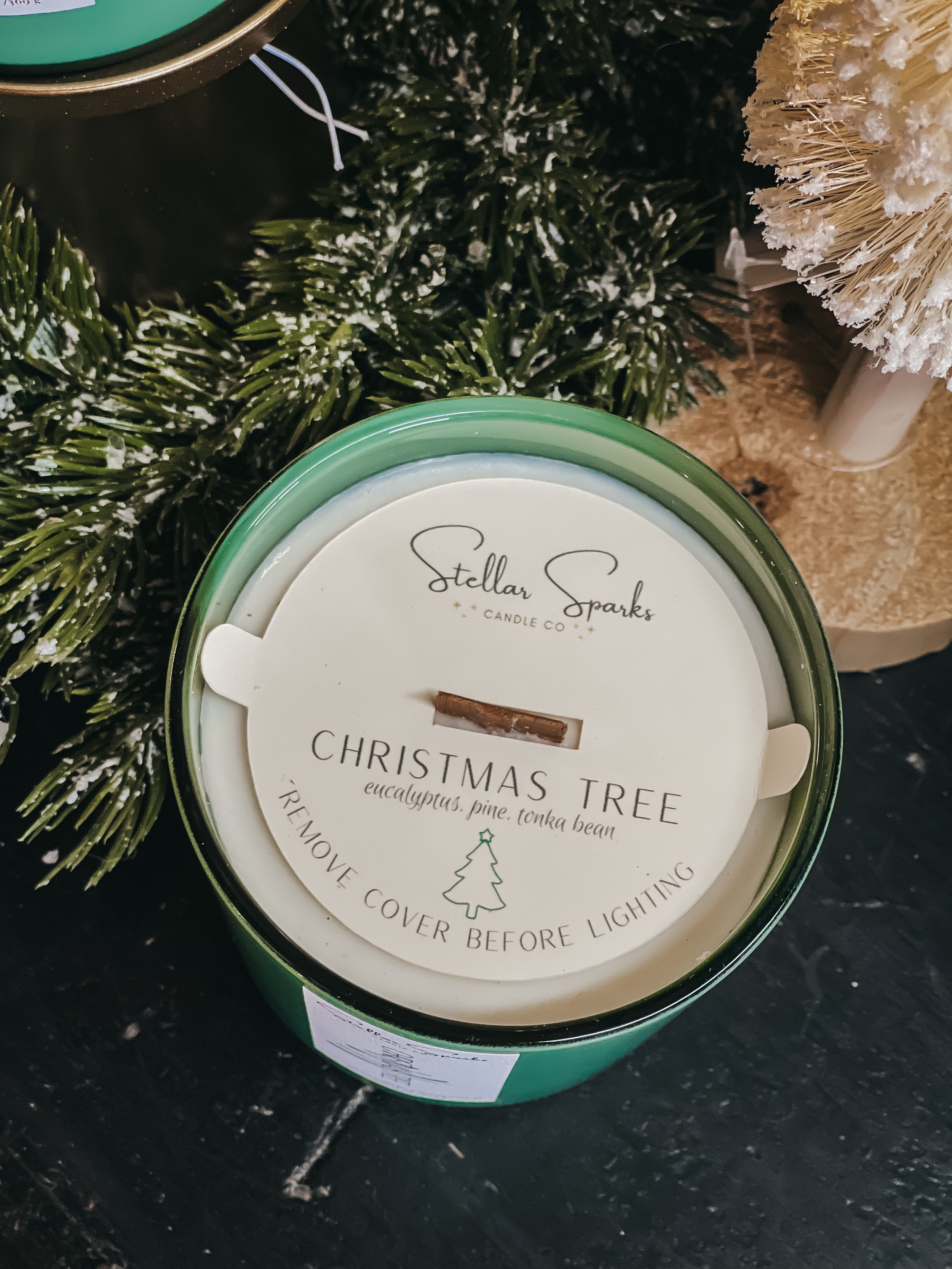 Flowers & Gifts › Christmas Tree Candle Image 1 of 2 Image 2 of 2 Christmas Tree Candle $32.99 One 13oz Christmas Tree wood wick candles with scent notes of eucalyptus, pine, and tonka bean Quantity: Add To Cart Added! One 13oz Christmas Tree wood wick candles with scent notes of eucalyptus, pine, and tonka bean