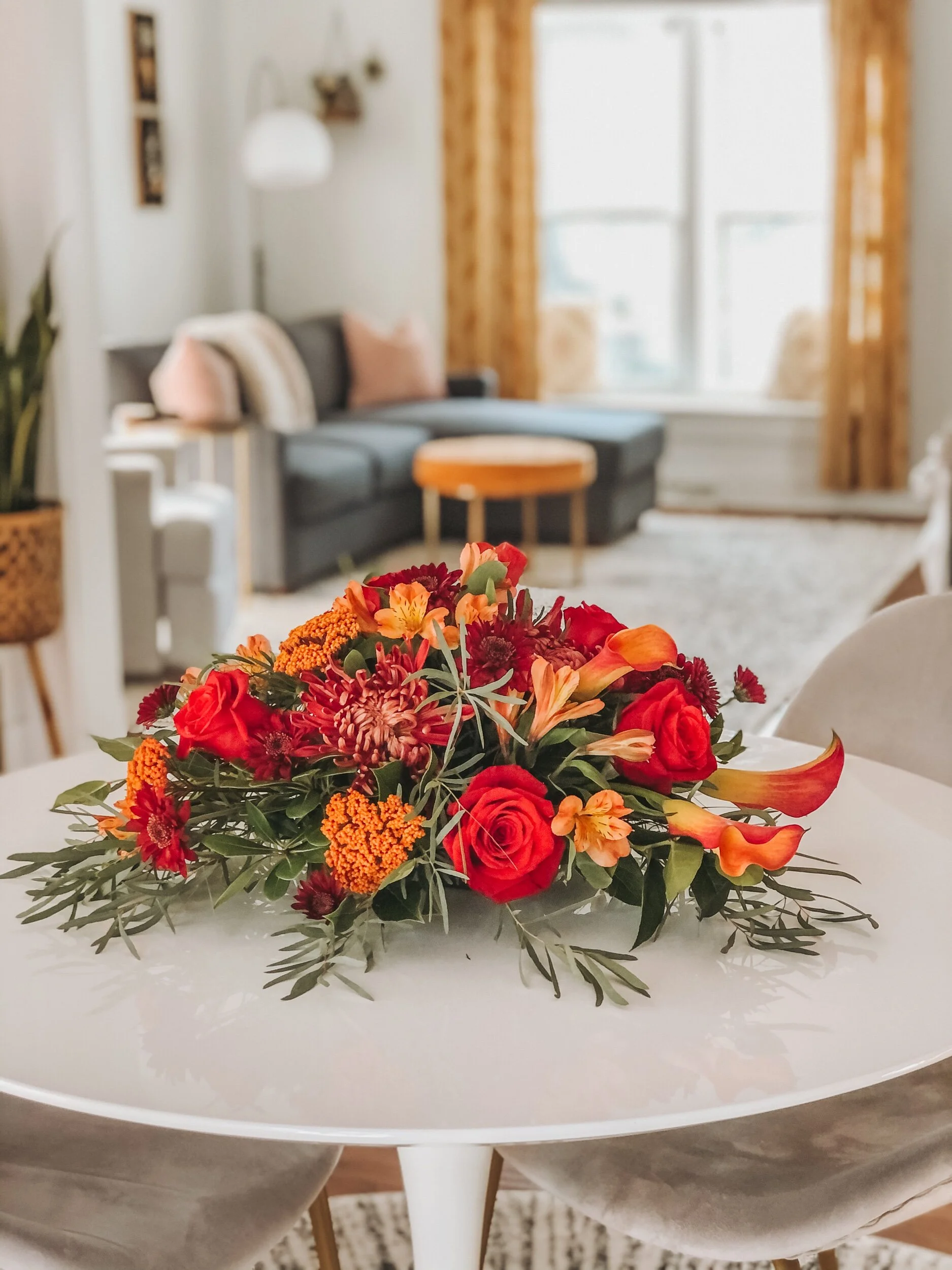 Send a beautiful Thanksgiving Day centerpiece arrangement of fall florals. Will make arrangement as close to pictured as possible. Some substitutions may apply depending on product availability.