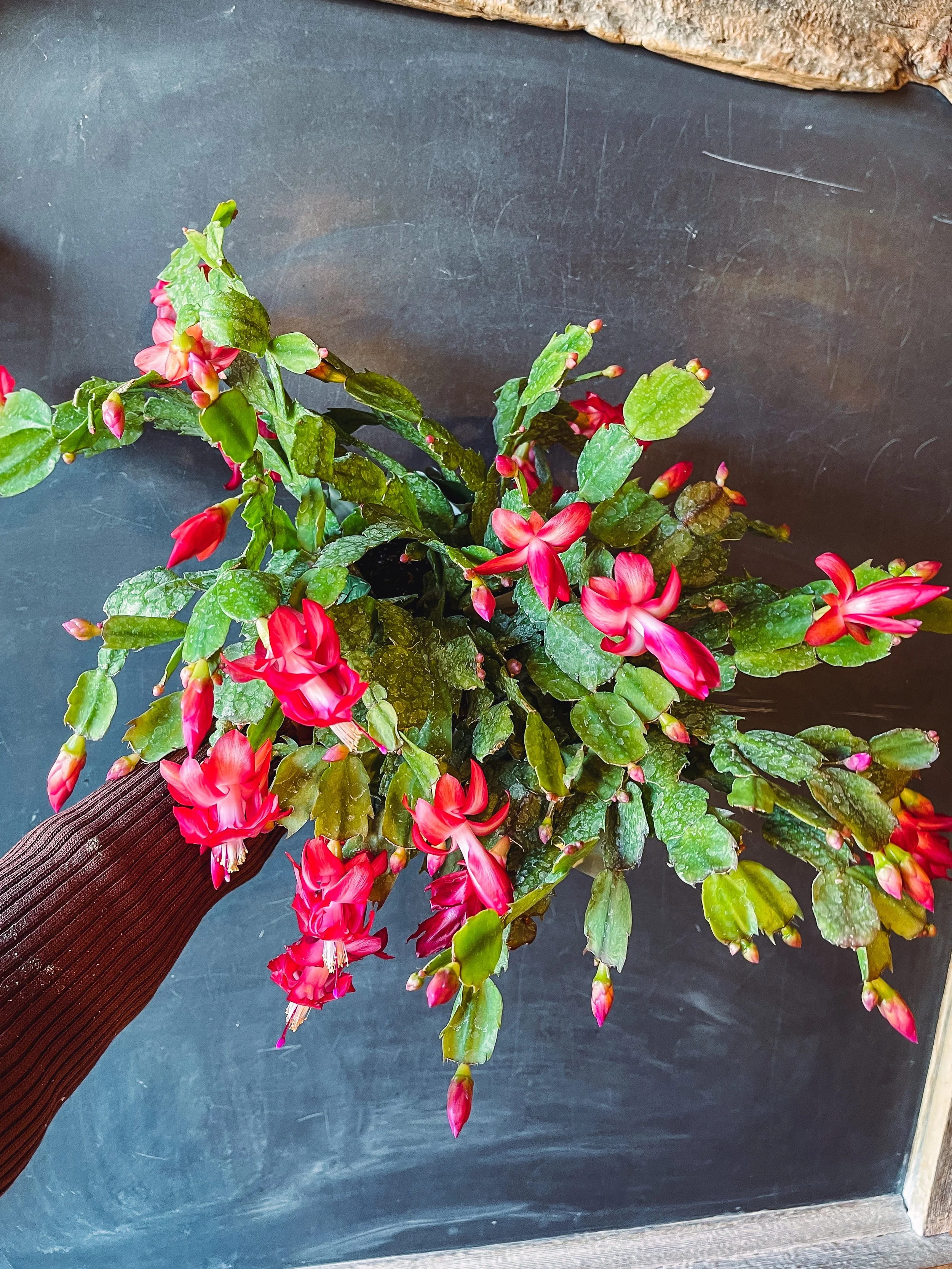 One Christmas Cactus plant. Colors and bloom stages may vary. Comes in foil wrap around the pot.