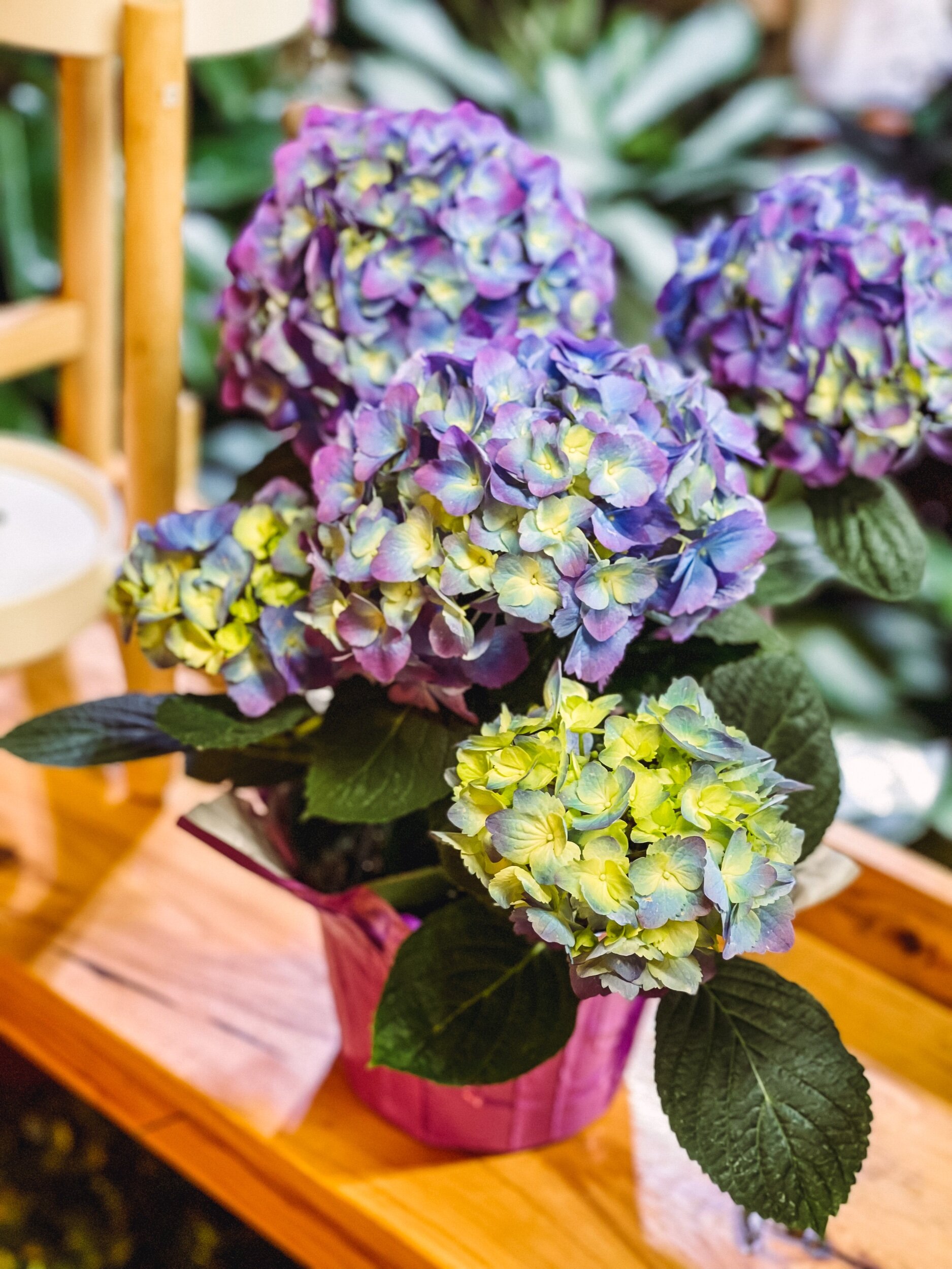 Colorful Hydrangea plant with decorative speed cover. As shown in pictures. Color of hydrangea blooms will vary.