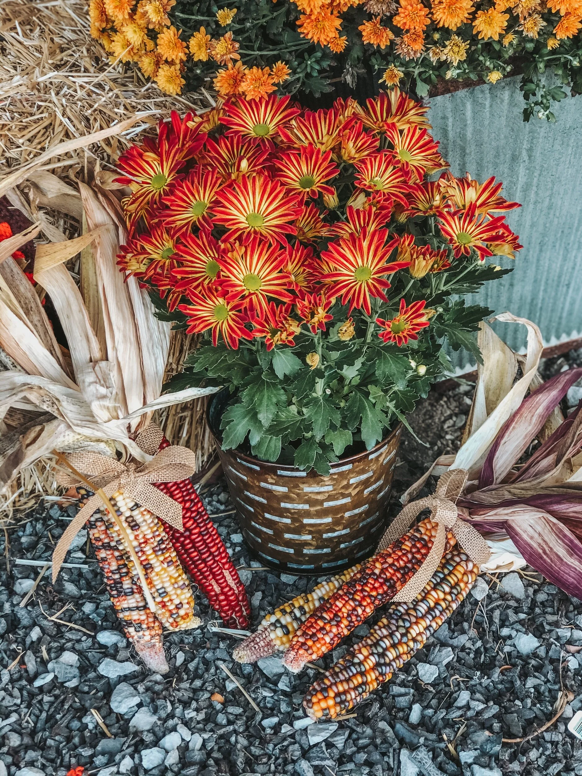 Send this seasonal fall colored chrysanthemum. Will be placed inside a basket with a plastic liner. Color and bloom stages vary from plant to plant. For questions call 641-782-2171